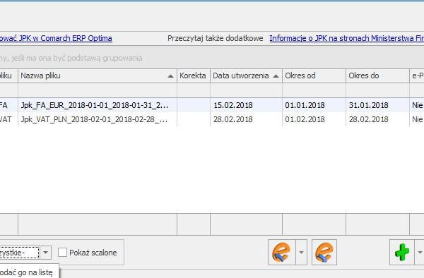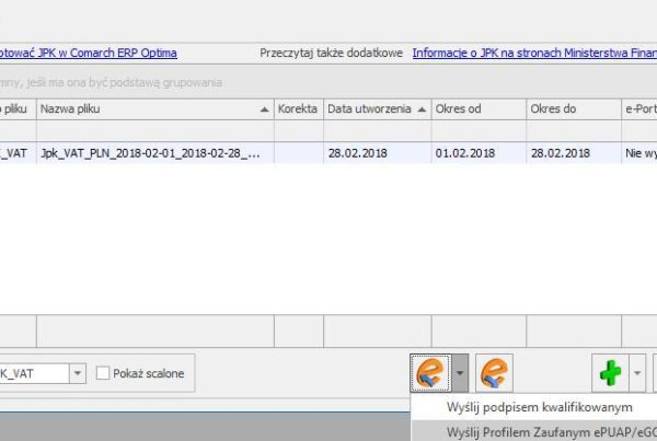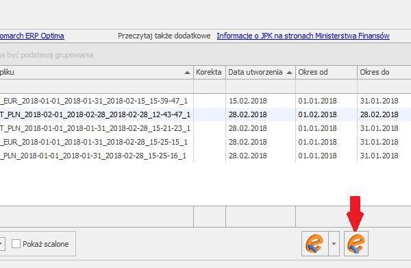 W oknie wygenerowanych plików JPK w programie Comarch ERP Optima należy zaznaczyć plik, którego dane…