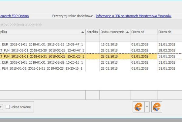 W oknie wygenerowanych plików JPK w programie Comarch ERP Optima należy zaznaczyć plik, którego dane…